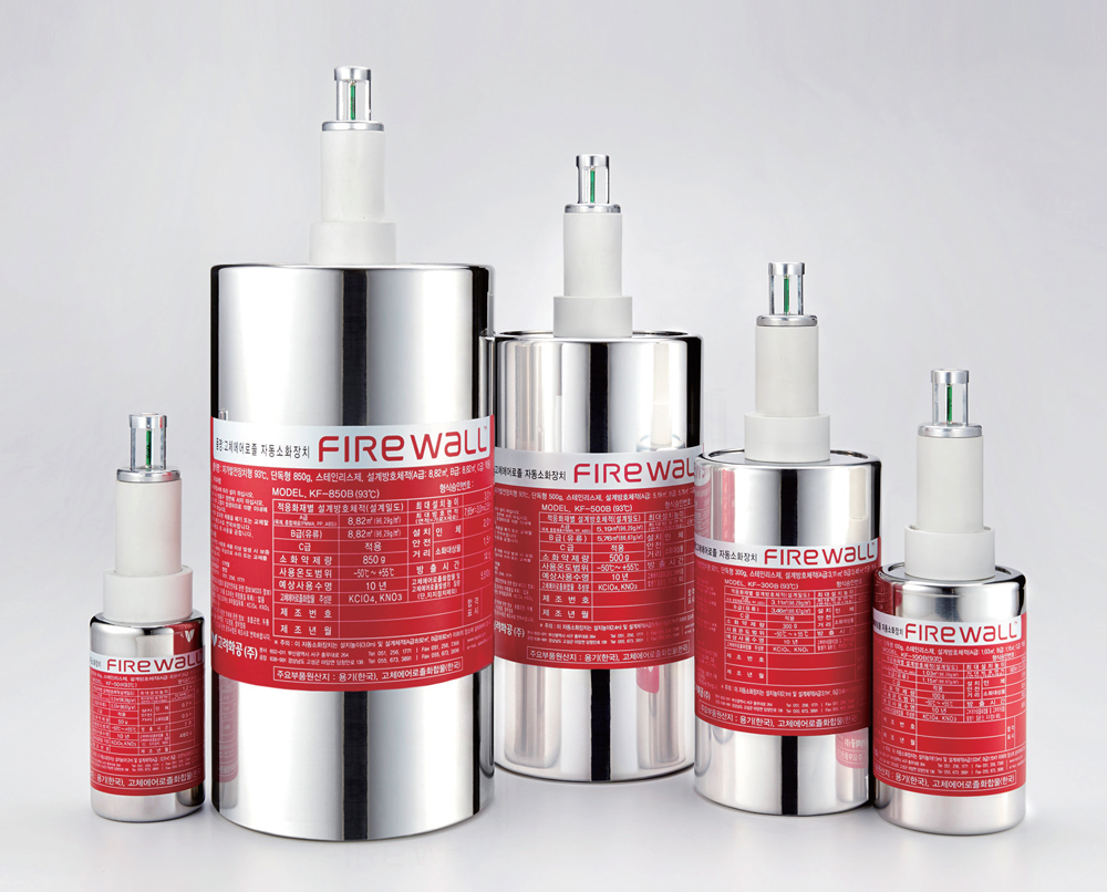 | 형식모델 | 소화제질량(g) | 설계밀도 방호체적(m³) (A급 화재/B급 화재) | 작동온도(℃) |