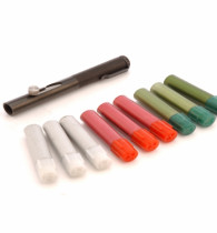 One end releases red illuminant for night-time use. The other end releases Orange Smoke for day-time use.