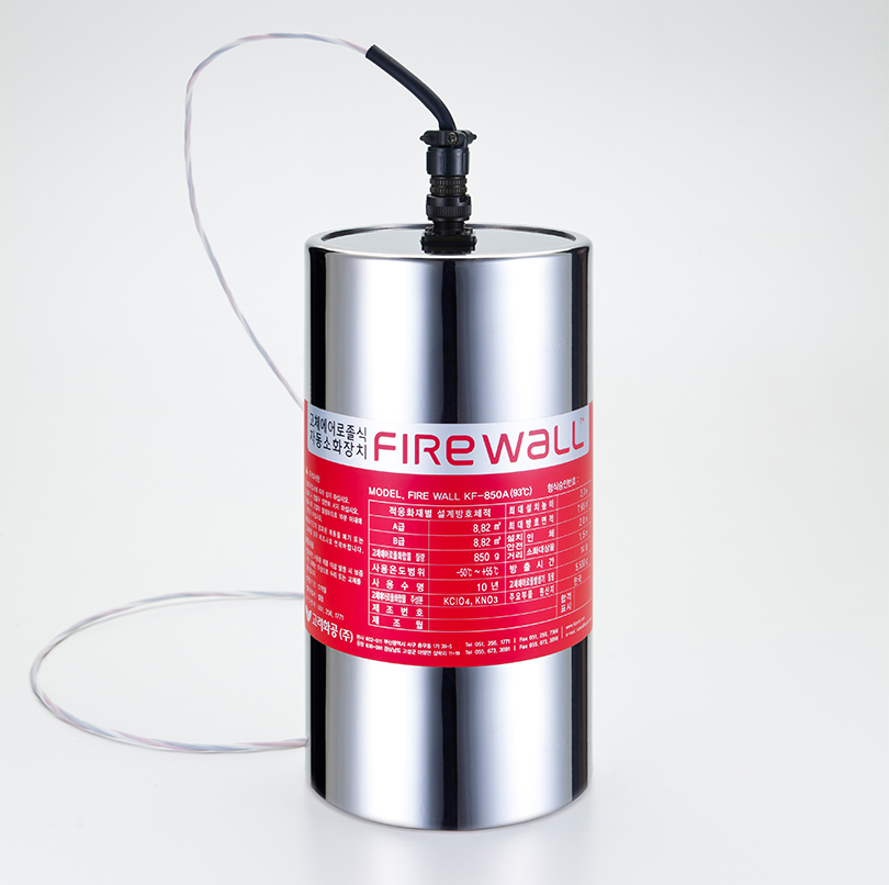 | 형식모델 | 소화제질량(g) | 설계밀도 방호체적(m³) (A급 화재/B급 화재) | 작동온도(℃) |